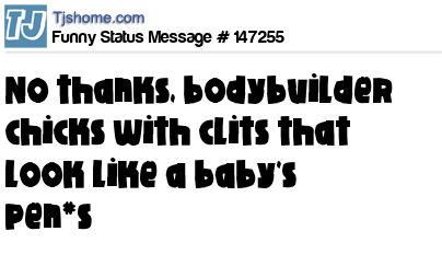 X says No thanks, bodybuilder chicks with clits that look like a baby's pen*s