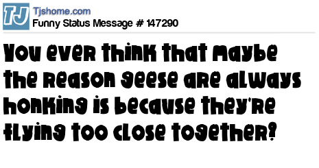 X You ever think that maybe the reason geese are always honking is because they're flying too close together?