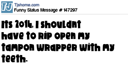 X Its 2014, I shouldnt have to rip open my tampon wrapper with my teeth.