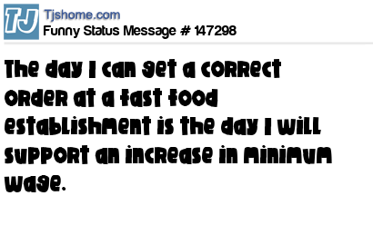 X says The day I can get a correct order at a fast food establishment is the day I will support an increase in minimum wage.