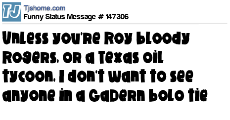 X says Unless you're Roy bloody Rogers, or a Texas oil tycoon, I don't want to see anyone in a GaDern bolo tie