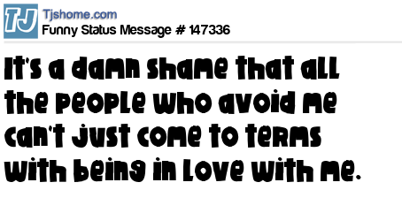 X says It's a damn shame that all the people who avoid me can't just come to terms with being in love with me.