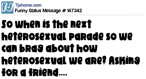 X  So when is the next heterosexual parade so we can brag about how heterosexual we are? Asking for a friend....