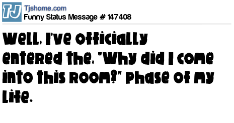 X says Well, I've officially entered the, "Why did I come into this room?" phase of my life.