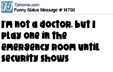 - # 27249 not a doctor, but I play one in the emergency room until security shows up.