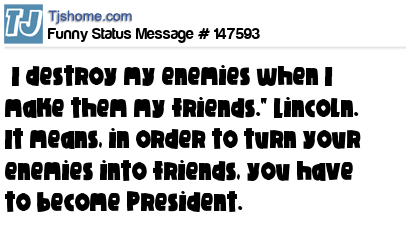X “I destroy my enemies when I make them my friends." Lincoln. It means, in order to turn your enemies into friends, you have to become President.
