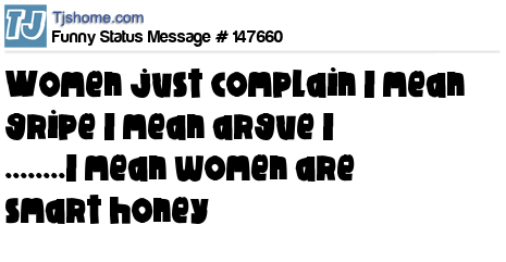 X Women just complain I mean gripe I mean argue I ........I mean women are smart honey