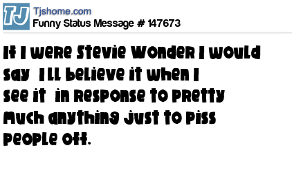 X says If I were Stevie Wonder I would say “I’ll believe it when I see it” in response to pretty much anything just to piss people off.
