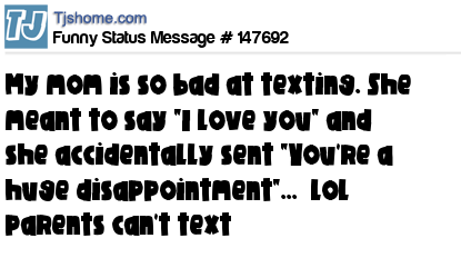 X My mom is so bad at texting. She meant to say "I love you" and she accidentally sent "You're a huge disappointment"... lol parents can't text