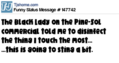 X says The Black Lady on the Pine-Sol commercial told me to disinfect the thing I touch the most... ...this is going to sting a bit.