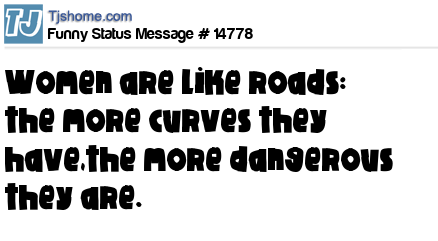 - # 14907 Women are like roads: the more curves they have,the more dangerous they are.