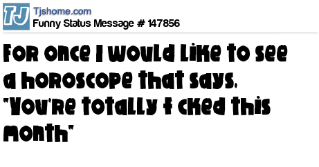 X says For once I would like to see a horoscope that says, "You're totally f cked this month"