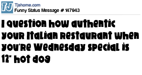 X says I question how authentic your Italian restaurant when you're Wednesday special is 12" hot dog