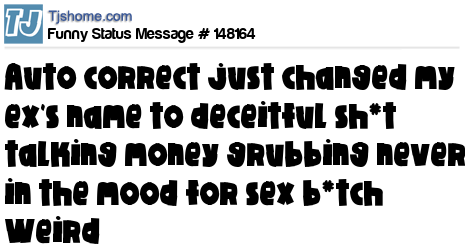 X says Auto correct just changed my ex's name to deceitful sh*t talking money grubbing never in the mood for sex b*tch Weird