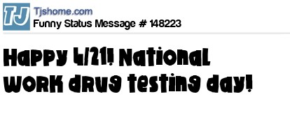 - # 166382 Always love April 21st as it's Random Drug Testing Day at work.