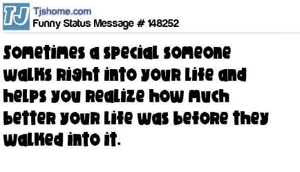 X says Sometimes a special someone walks right into your life and helps you realize how much better your life was before they walked into it.