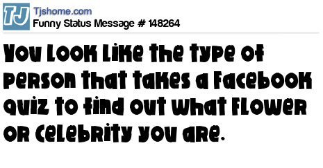 X says You look like the type of person that takes a Facebook quiz to find out what Flower or Celebrity you are.