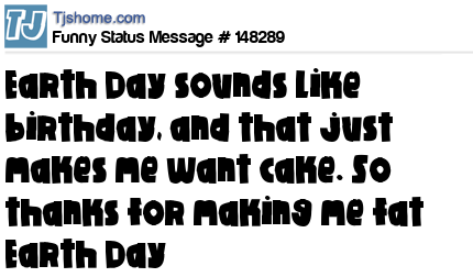 X says Earth Day sounds like birthday, and that just makes me want cake. So thanks for making me fat Earth Day