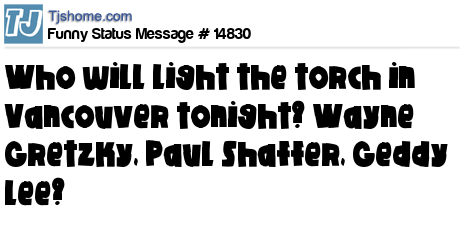 X Who will light the torch in Vancouver tonight? Wayne Gretzky, Paul Shaffer, Geddy Lee?