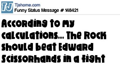 X According to my calculations,,,, The Rock should beat Edward Scissorhands in a fight