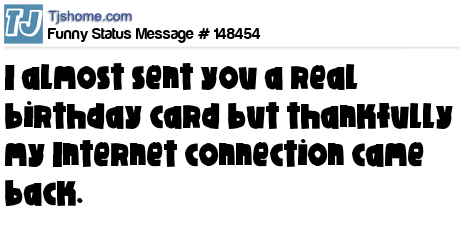 X says I almost sent you a real birthday card but thankfully my Internet connection came back.