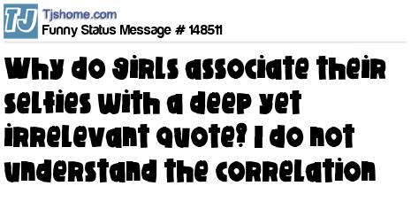 X says Why do girls associate their selfies with a deep yet irrelevant quote? I do not understand the correlation