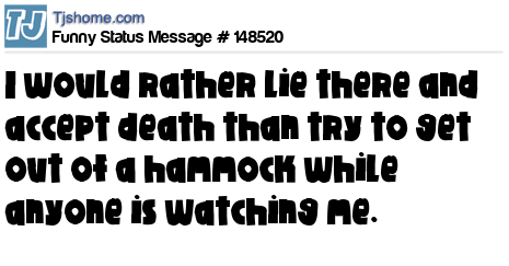 X says I would rather lie there and accept death than try to get out of a hammock while anyone is watching me.