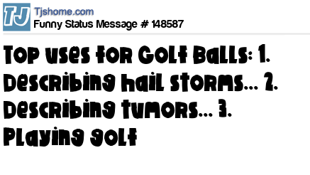 - # 148608 Top uses for Golf Balls: 1. Describing hail storms... 2. Describing tumors... 3. Playing golf ...and the ever popular "Garden hose refference"