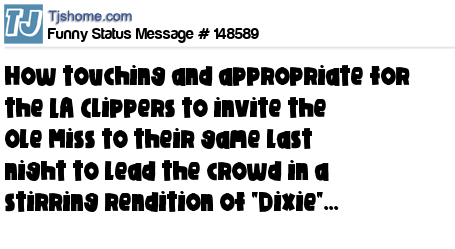 X says How touching and appropriate for the LA Clippers to invite the Ole Miss to their game last night to lead the crowd in a stirring rendition of "Dixie"...