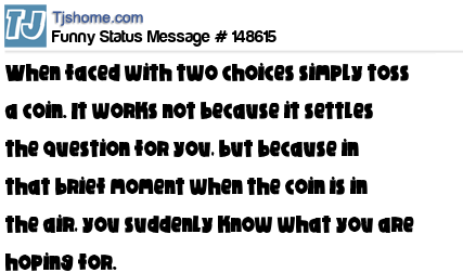 - # 182197 If you can’t decide between two things, toss a coin. Not because it will decide for you, but in that brief moment it’s flipping in the air, you will realize what you really wish for.