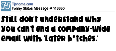 X says Still don't understand why you can't end a company-wide email with, 'Later b*tches.'