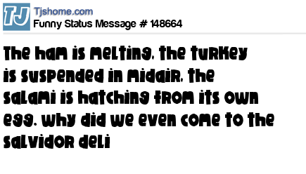 - # 177809 The ham is melting, the turkey is suspended in midair, and the salami is hatching from its own egg. Why did I even come into the Salvador Deli?