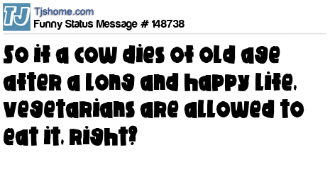 X says So if a cow dies of old age after a long and happy life, vegetarians are allowed to eat it, right?
