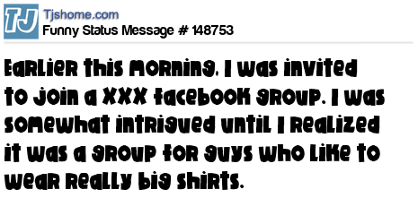 X Earlier this morning, I was invited to join a XXX facebook group. I was somewhat intrigued until I realized it was a group for guys who like to wear really big shirts.