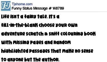 X says Life isn't a fairy tale. It's a fill-in-the-blank choose your own adventure scratch & sniff colouring book with missing pages and random highlighted passages that make no sense to anyone but the author.