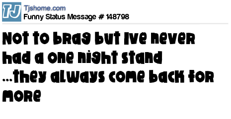 X says Not to brag but Ive never had a one night stand ...they always come back for more