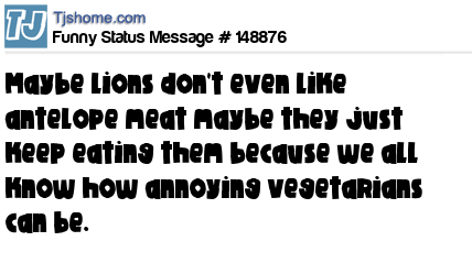 X says Maybe lions don't even like antelope meat maybe they just keep eating them because we all know how annoying vegetarians can be.