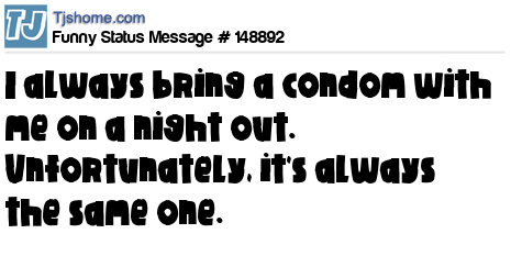 X says I always bring a condom with me on a night out.  Unfortunately, it's always the same one.