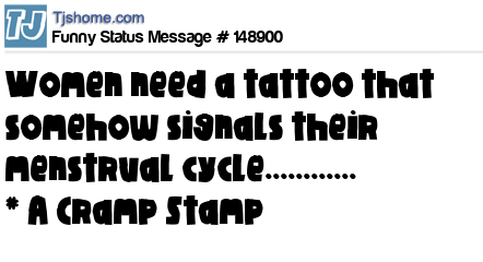 X Women need a tattoo that somehow signals their menstrual cycle............ * A Cramp Stamp