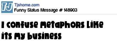 - # 2264 not allowed to use metaphors anymore. It's like an applesauce sandwich trying to teabag a Yeti. Know what I mean?