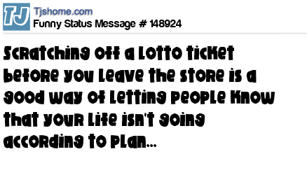 - # 129141 Scratching off a lotto ticket before you leave the store is a good way of letting people know that your life isn't going according to plan....