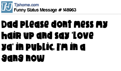 X says Dad please dont mess my hair up and say 'love ya' in public, I'm in a gang now