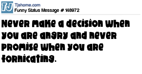 X says Never make a decision when you are angry and never promise when you are fornicating.