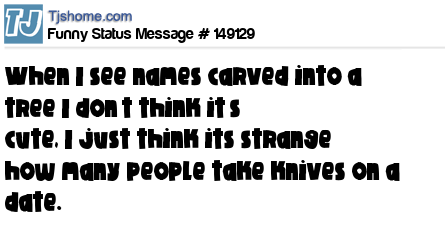 - # 131196 When I see names carved into a tree I don't think it's cute, I just think its strange how many people take knives on a date.
