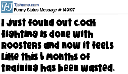 - # 188980 I just found out that сосk fighting is done with chickens? That's 12 months of training gone to waste!