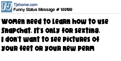 X says Women need to learn how to use Snapchat. It's only for sexting, I don't want to see pictures of your feet or your new perm