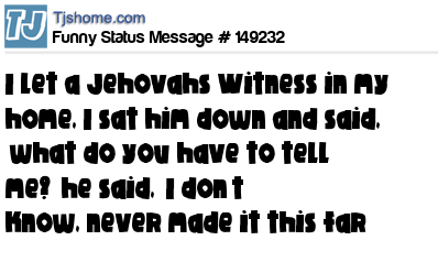 - # 141039 I let a Jehovahs Witness in my home, I sat him down and said, 'what do you have to tell me?' he said, 'I don't know, never made it this far'