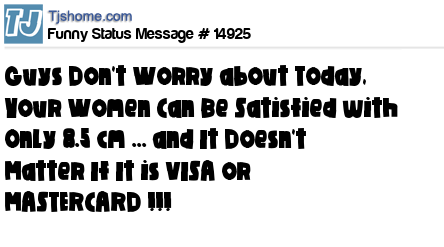 - # 131788 A woman can be satisfied with 3 inches.. it doesn't matter if it's Visa or MasterCard.