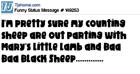 X I'm pretty sure my counting sheep are out parting with Mary's little lamb and Baa Baa Black Sheep.............