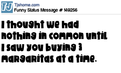 X says I thought we had nothing in common until I saw you buying 3 margaritas at a time.